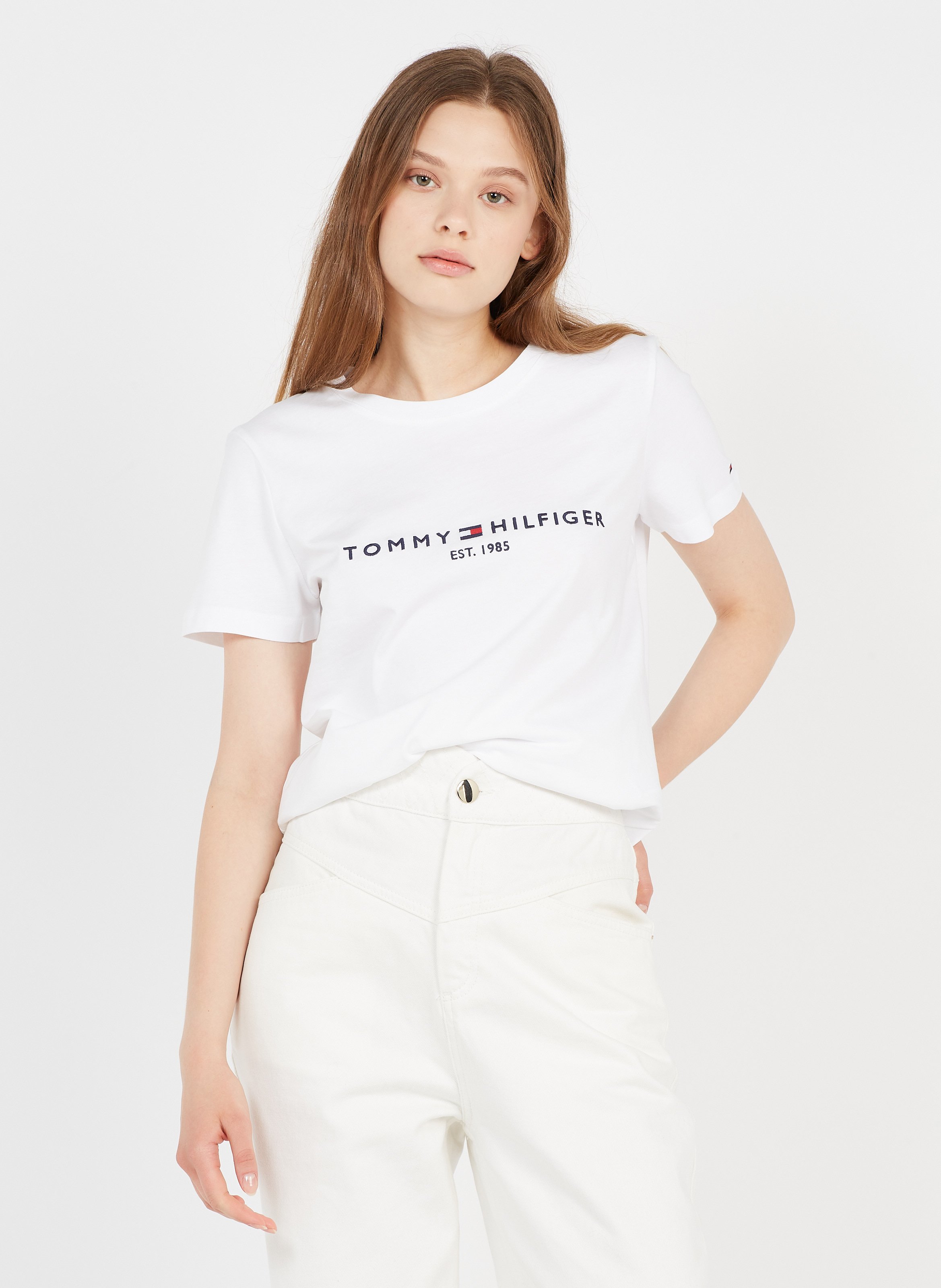 Besticktes Rundhals T Shirt Aus Bio Baumwolle White Tommy Hilfiger Damen Place Des Tendances